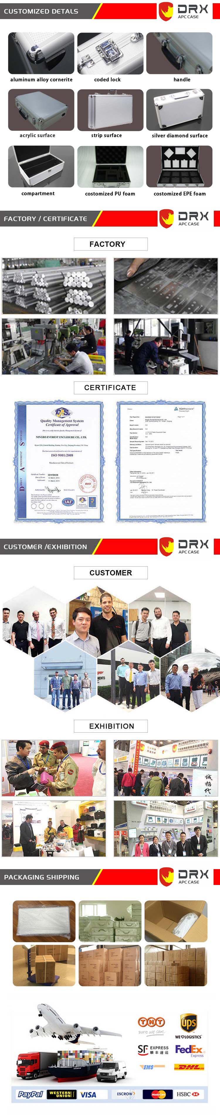 3.Accessories: Metal corner protectors, Metal lock, Padded metal handle and EVA foam;