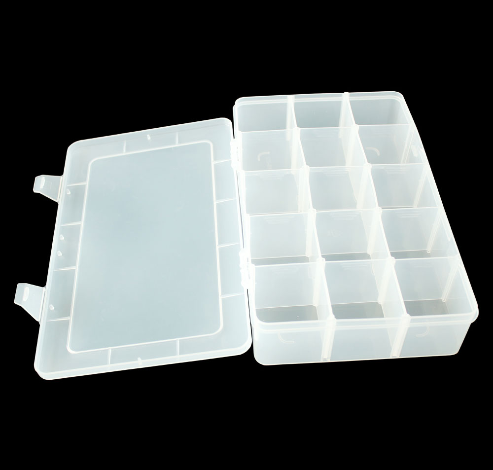 1) 材料:透明PP 2) 柔韌的鉸鏈設(shè)計,易于打開與保存 3) 有可移動的間隔,大小組合可以不同 4) 折疊時可以節(jié)省空間的設(shè)計 5) 廣泛用于電子元件,藥丸,以及魚鉤 魚餌的存儲等行業(yè)